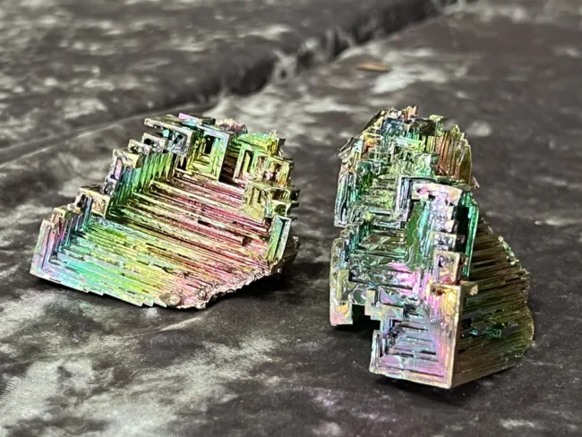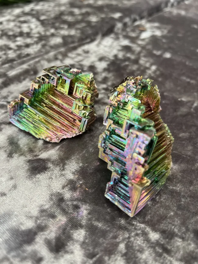 Bismuth Crystals are unique and beautiful mineral formation that’s known for its iridescent colors and geometric shapes. They are formed through a process called, “crystallization” which occurs when a molten bismuth cools and solidifies, resulting in the formation of crystalline structures